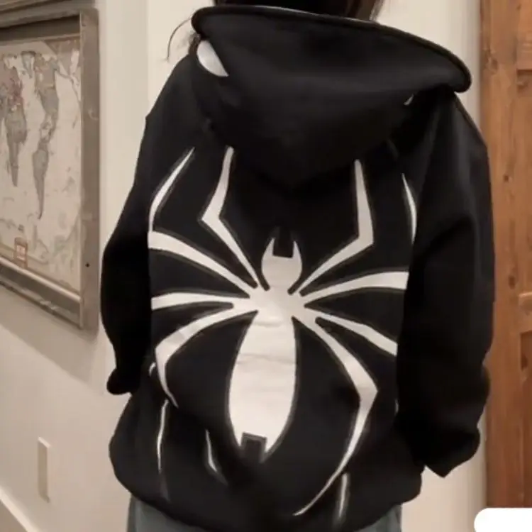 Harajuku Fashion Y2K Oversized Spider Women Hoodie Autumn and Winter Punk Full Zip