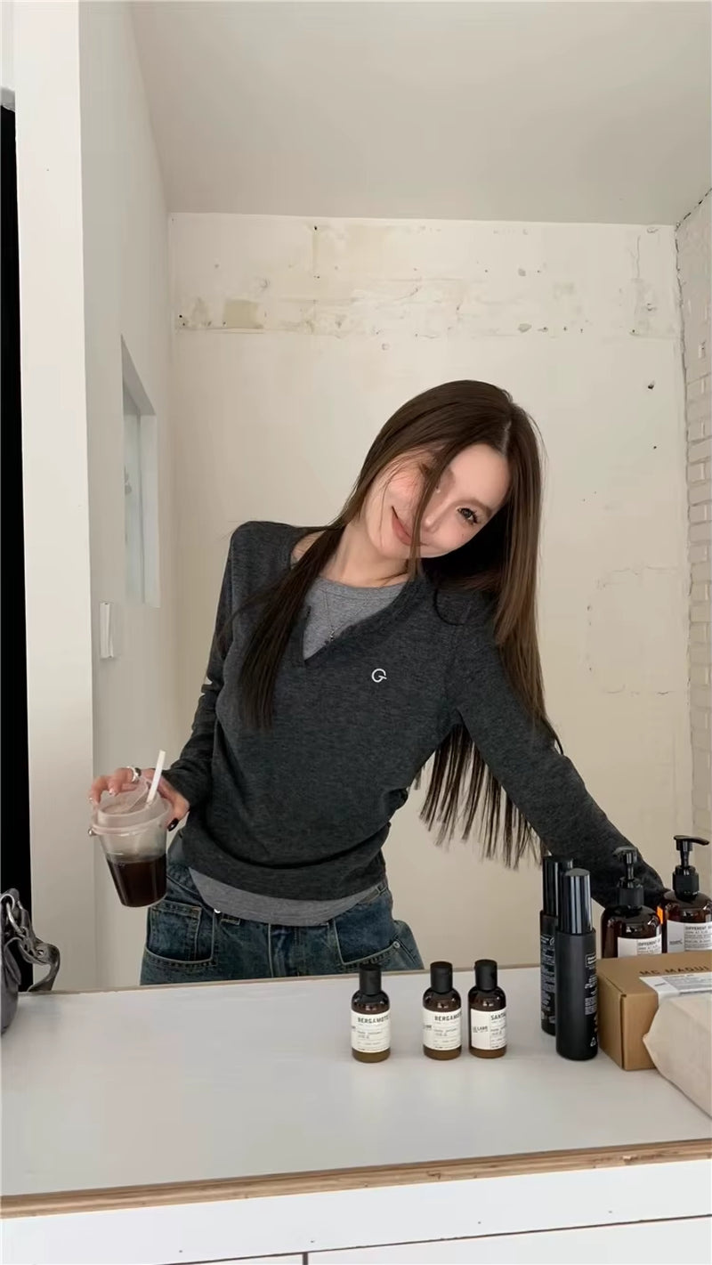 Women'S T-Shirt Fake Two Piece Long Sleeved T-Shirt for Autumn and Winter